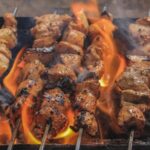 Hot & Grilled nachos smothered in cheddar cheese, beef, black olives, onions,