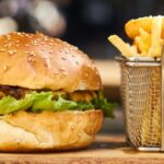 Special Burger, deep-fried beef ravioli served with marinara sauce and topped